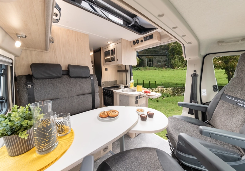 From the moment you see the APEX CV, it stands apart. With premium detailing across the cab, upgraded upholstery, and advanced onboard technology, every detail is elevated. Choose from four familiar Autoquest CV layouts – now with full Apex spec including alarm, Wi-Fi, Winter pack and more. It’s touring redefined,.