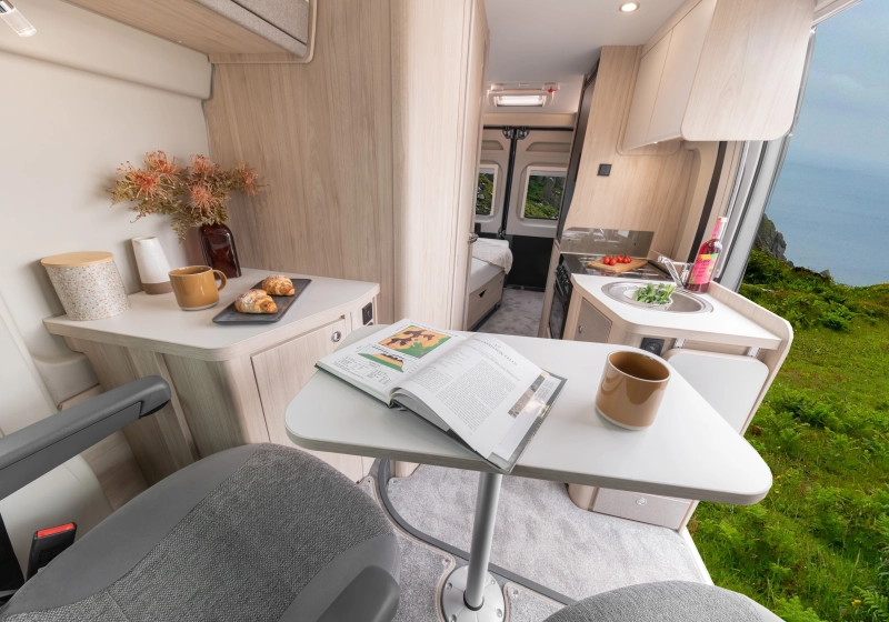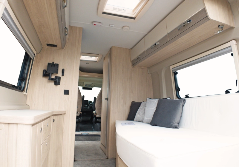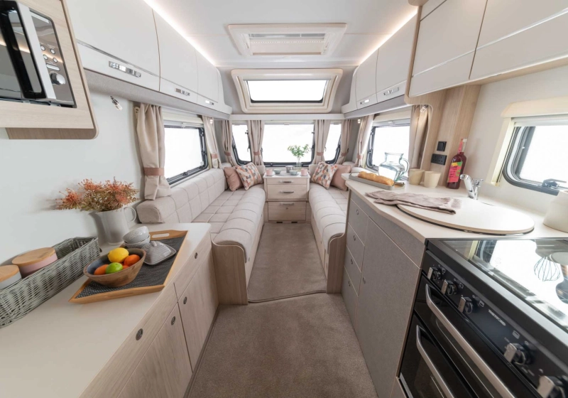 Designed for no-fuss touring, the Whirlwind GTV offers three layouts tailored to different lifestyles. From solo explorers to small families, there’s a model to suit everyone. The light yet durable finish inside offers a bright and airy space, while outside, the Grey chassis with discreet badging keeps things sleek.