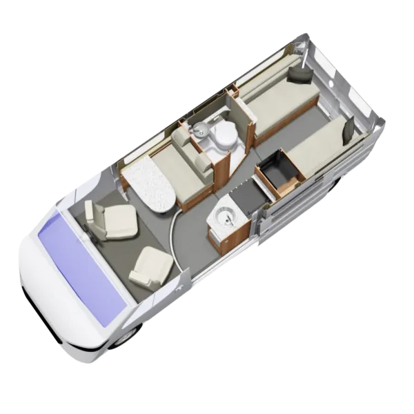 Erwin Hymer Group UK Ltd reserves the right to, and does alter from time to time, technical specifications, prices and model ranges as materials, model improvements and conditions require, and can accept no responsibility for discrepancies between these and subsequent models shown. The images and information on this page are for guidance purposes only. Please be sure to check our full current and technical specifications with your retailer before placing your order. Props shown are for photographic purposes only and are not included in the specification. Bed covers and additional scatter cushions shown are for demonstration purposes only, similar co-originating sets are available to purchase from Erwin Hymer Group Ltd retailer.