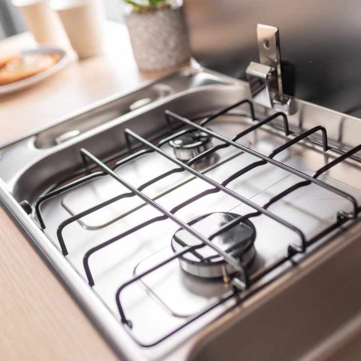 The Whirlwind GTV 560 offers a 6m layout with either a fixed roof 3-berth or pop-top 5-berth. Finished in grey with subtle branding, it combines affordability with functionality, featuring large rear bed storage, multi-colour cushions, and practical living space.