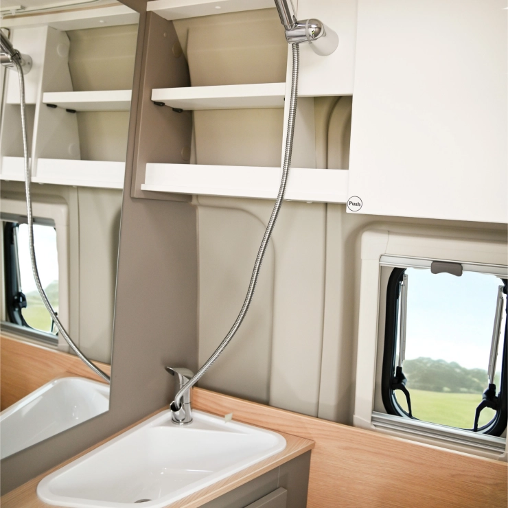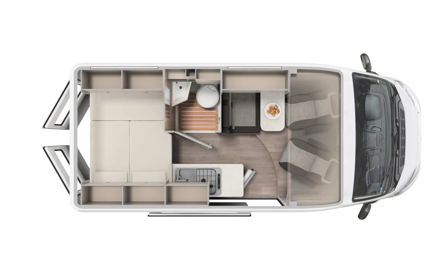 Erwin Hymer Group UK Ltd reserves the right to, and does alter from time to time, technical specifications, prices and model ranges as materials, model improvements and conditions require, and can accept no responsibility for discrepancies between these and subsequent models shown. The images and information on this page are for guidance purposes only. Please be sure to check our full current and technical specifications with your retailer before placing your order. Props shown are for photographic purposes only and are not included in the specification. Bed covers and additional scatter cushions shown are for demonstration purposes only, similar co-originating sets are available to purchase from Erwin Hymer Group Ltd retailer.