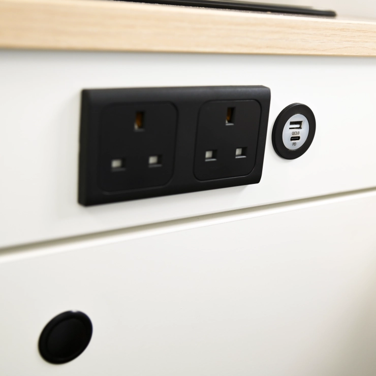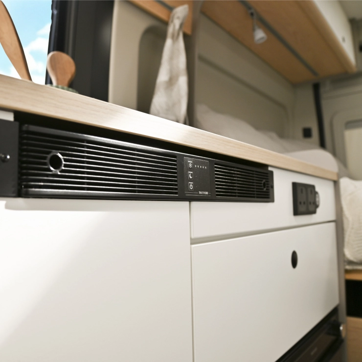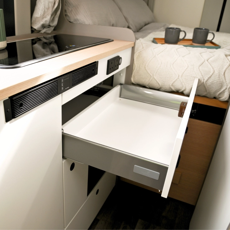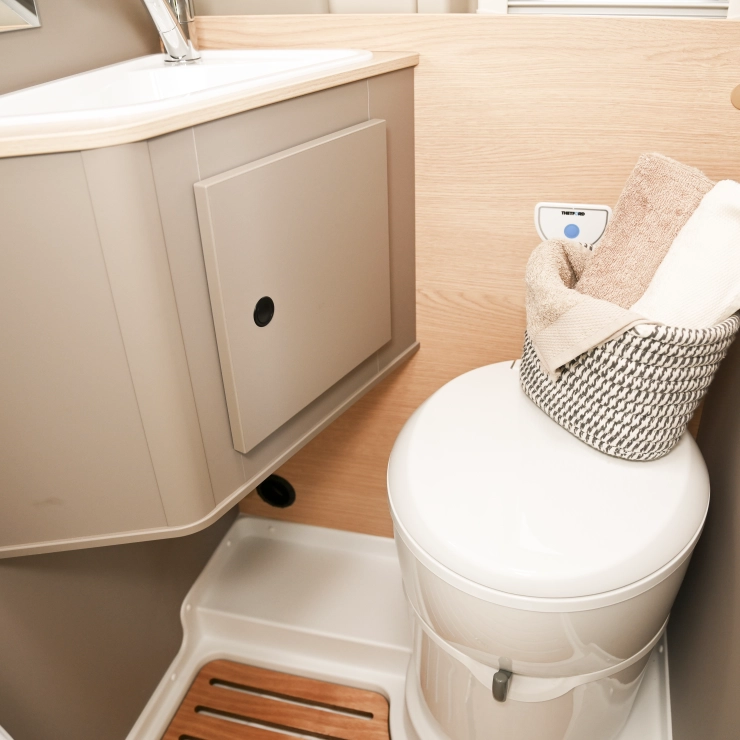 • Conveniently placed 12V control panel, incorporating water pump, lighting circuits, fresh water tank level and waste warning light when full