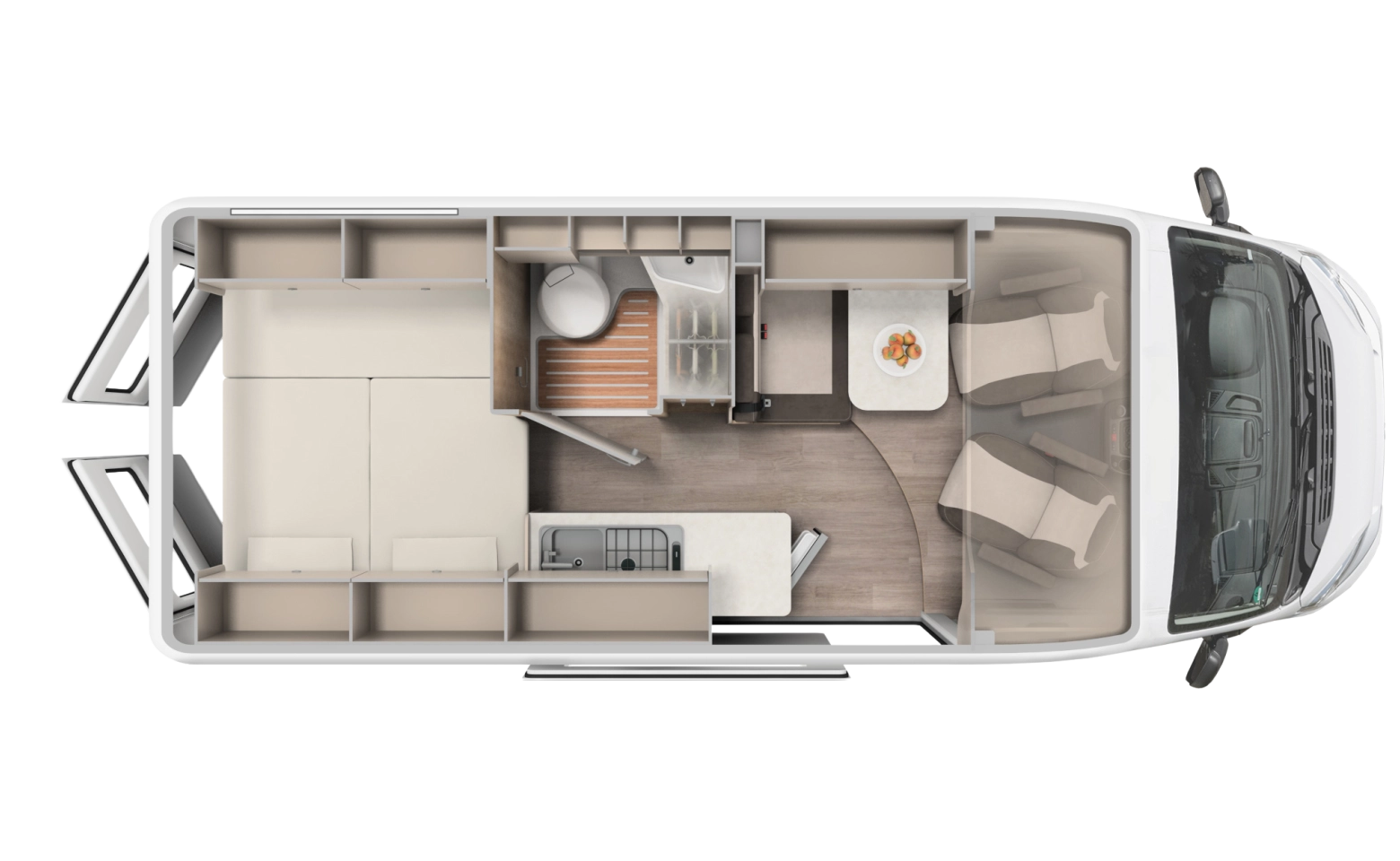 Erwin Hymer Group UK Ltd reserves the right to, and does alter from time to time, technical specifications, prices and model ranges as materials, model improvements and conditions require, and can accept no responsibility for discrepancies between these and subsequent models shown. The images and information on this page are for guidance purposes only. Please be sure to check our full current and technical specifications with your retailer before placing your order. Props shown are for photographic purposes only and are not included in the specification. Bed covers and additional scatter cushions shown are for demonstration purposes only, similar co-originating sets are available to purchase from Erwin Hymer Group Ltd retailer.