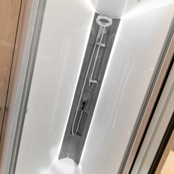 The Crusader Shamal offers flexible sleeping with twin rear beds and a central washroom for added privacy. With a bright front lounge, high-spec kitchen, and premium soft furnishings, it blends comfort with convenience.