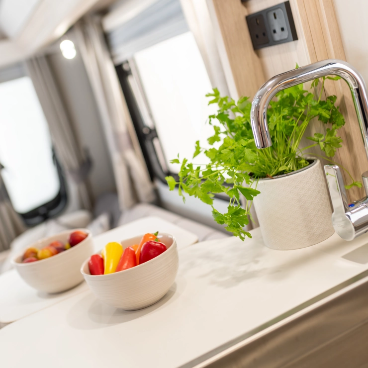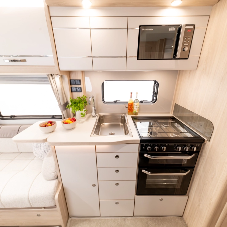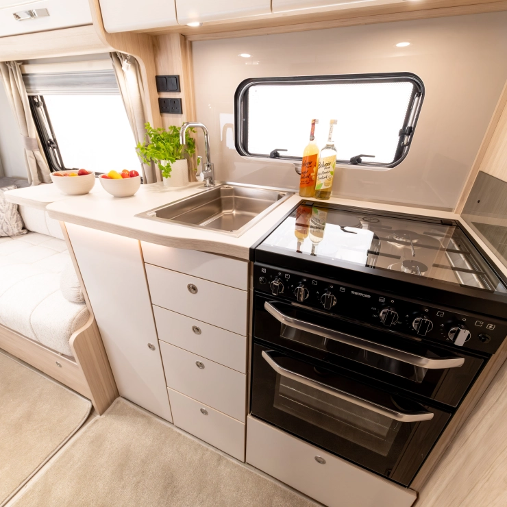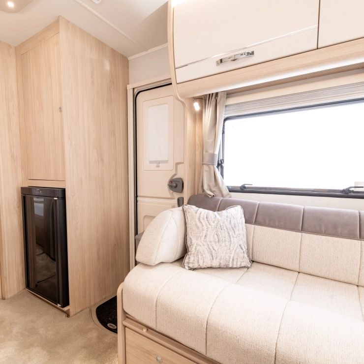 Erwin Hymer Group UK Ltd reserves the right to, and does alter from time to time, technical specifications, prices and model ranges as materials, model improvements and conditions require, and can accept no responsibility for discrepancies between these and subsequent models shown. The images and information on this page are for guidance purposes only. Please be sure to check our full current and technical specifications with your retailer before placing your order. Props shown are for photographic purposes only and are not included in the specification. Bed covers and additional scatter cushions shown are for demonstration purposes only, similar co-originating sets are available to purchase from Erwin Hymer Group Ltd retailer.