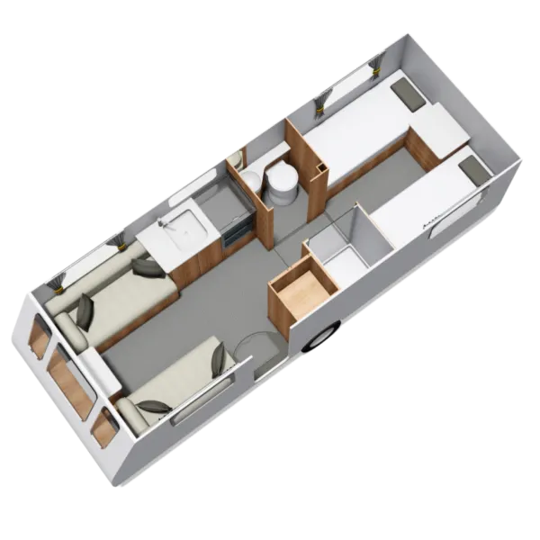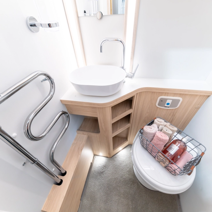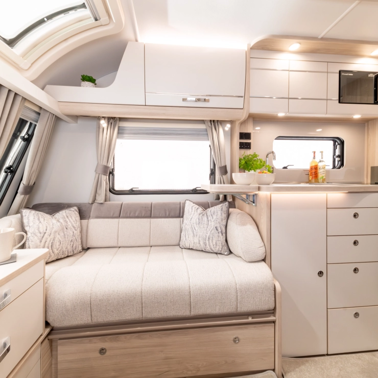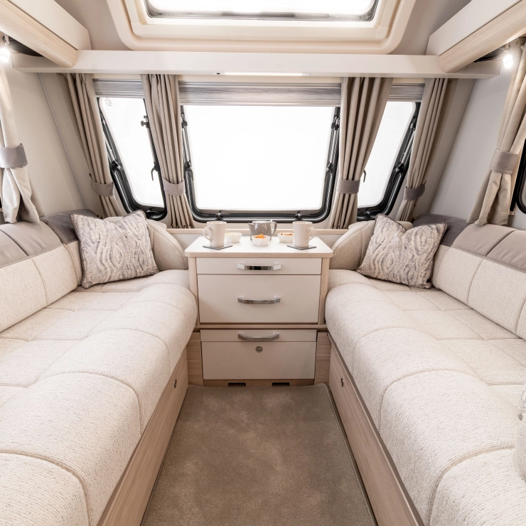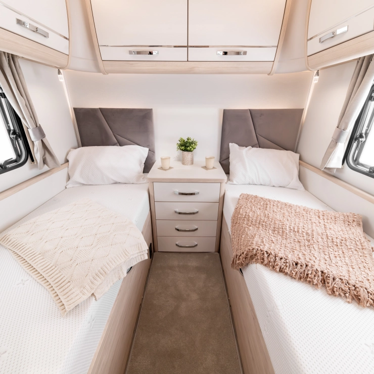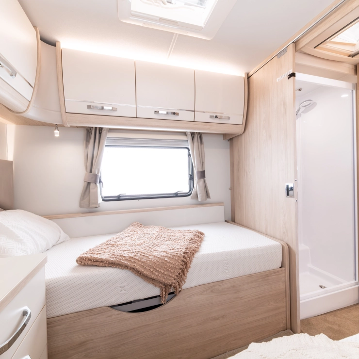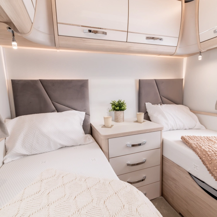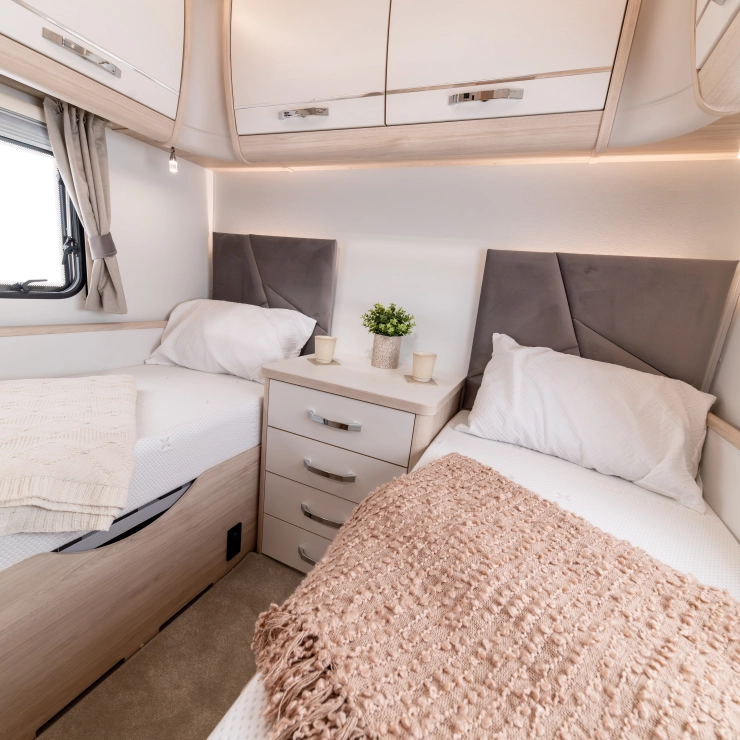 The Crusader Shamal offers flexible sleeping with twin rear beds and a central washroom for added privacy. With a bright front lounge, high-spec kitchen, and premium soft furnishings, it blends comfort with convenience. Ideal for couples or companions who prefer individual beds without compromise.