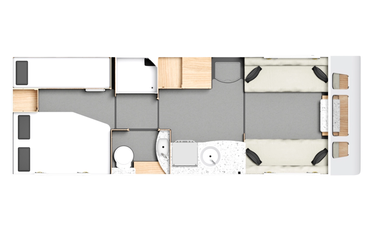 Combining practicality and premium features, the Avante Apex 868 offers space for the whole family with rear bunks, a comfortable French bed and a fully equipped living space. Touring has never felt so easy – or so stylish.
