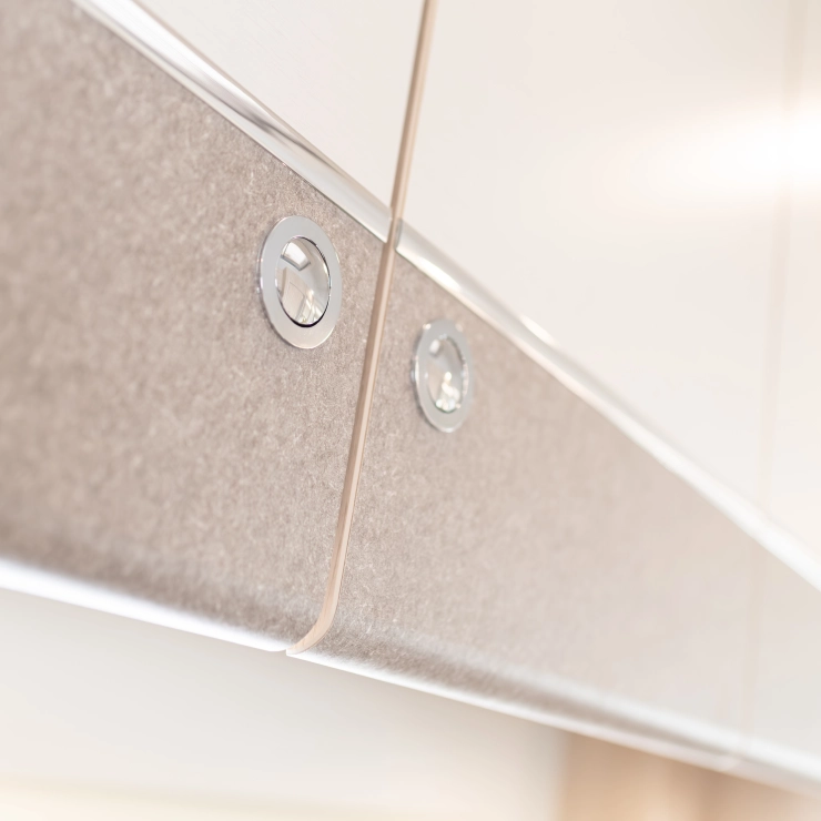 • 'Tibero with Platino & Linum Haithabu material scheme, handcrafted dove-tailed drawers, ‘Quiet-Close’ overhead lockers, removable shelves, co-ordinating flush-fit kitchen units with Chrome inset detail and positive locking throughout
