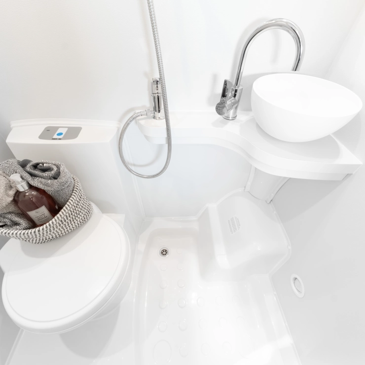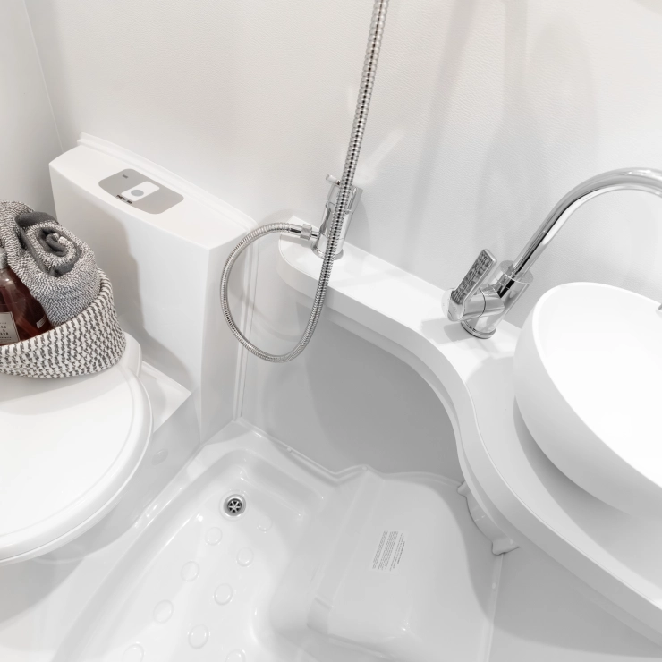 • Conveniently placed 12V control panel, incorporating water pump, lighting circuits, fresh water tank level and waste warning light when full
