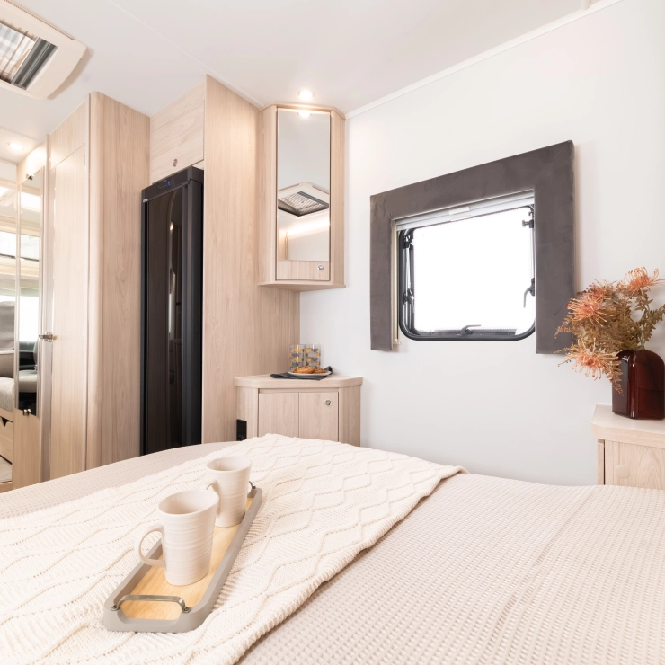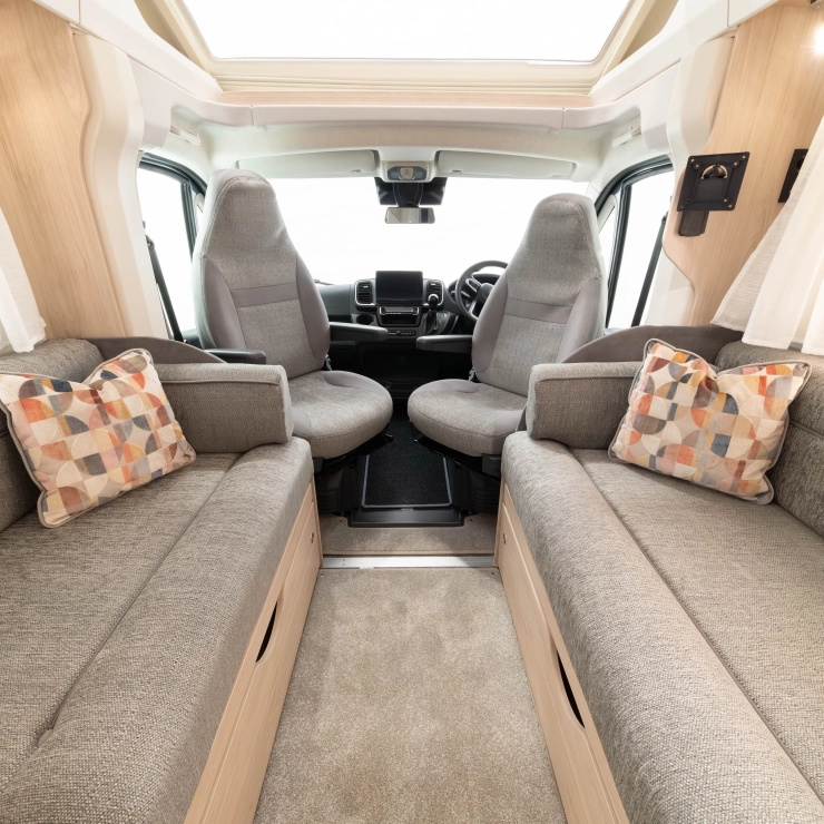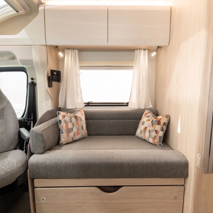 Erwin Hymer Group UK Ltd reserves the right to, and does alter from time to time, technical specifications, prices and model ranges as materials, model improvements and conditions require, and can accept no responsibility for discrepancies between these and subsequent models shown. The images and information on this page are for guidance purposes only. Please be sure to check our full current and technical specifications with your retailer before placing your order. Props shown are for photographic purposes only and are not included in the specification. Bed covers and additional scatter cushions shown are for demonstration purposes only, similar co-originating sets are available to purchase from Erwin Hymer Group Ltd retailer.