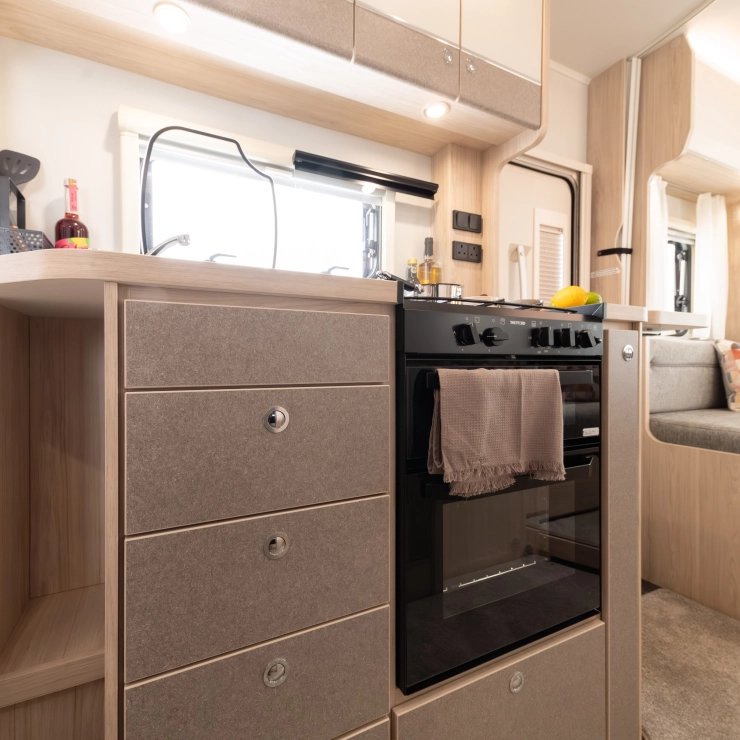 • The Elddis ZIP System: A fully bonded, marine-grade aluminium construction method that delivers superior strength, stability, and water ingress protection through a sealed metallic frame and precision engineering. HaloTEC: Seamless interior walls made from RENOLIT’s CORK-STOCK — water-resistant, wipe-clean, and elegant.